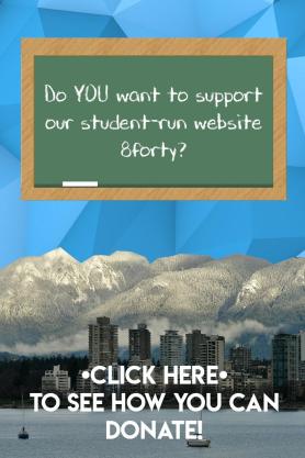 This advertisement was about soliciting donations for the website. I used the client-led advertisement style to make this. One color you can probably see immediately is the bright blue. I chose blue because it represents the sky behind the mountains and blue is usually very calming, but it is also very bold and bright so it catches people’s eyes. The chalkboard and chalk font represent that we are a school-run website. The mountains were place at the bottom of the ad to make the chalkboard stand out more but it was also placed there to represent the mountains in the 8forty logo. The words at the bottom are in a bold white font to catch the eyes of the viewer and the bold feature makes it easier to read than a regular non-bold Arial font.