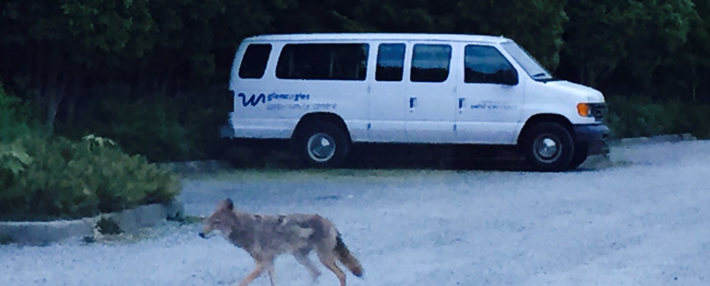 To learn to coexist with wild animals like coyotes, it is best to learn how to react when seeing them. You can report online by using the Vancouver sight report form or call the coyote info line 604-681-WILD/9453. To scare off the coyote, make loud noises you can yell, act large and tough you can wave a stick or your jacket, throw a rock near it but not directly on the coyote, maintain eye contact, hold kids and smaller pets, if there are any around, and slowly back up but do not run. Avoid feeding coyotes and getting comfortable, once they start feeling completely safe with people, it could be a potential danger for the whole society.