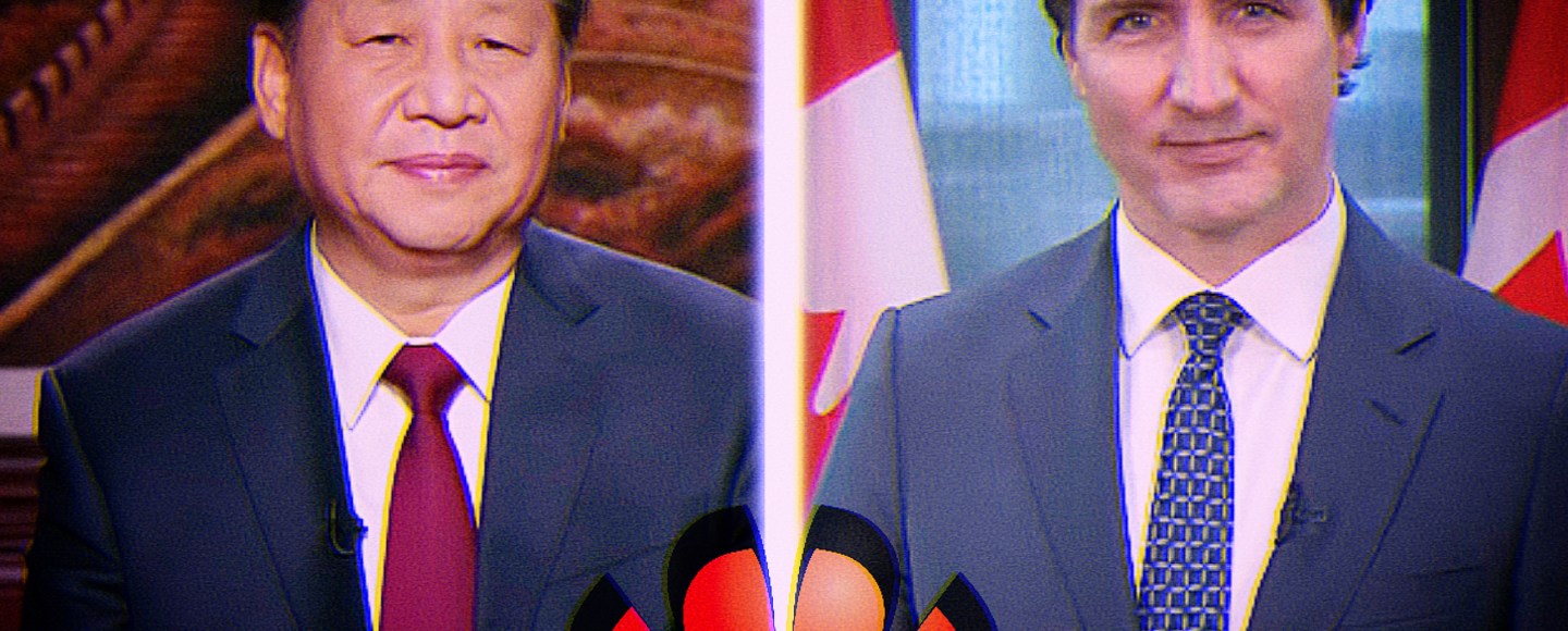Photo Illustrated by Lucas Smith / Screenshots from Trudeau and Jinping, logo from Huawei